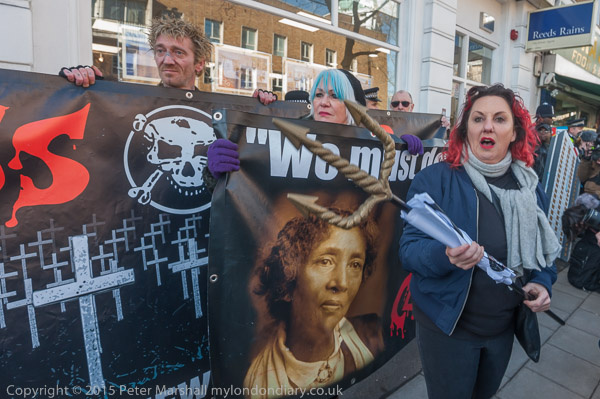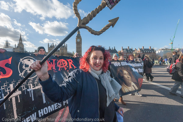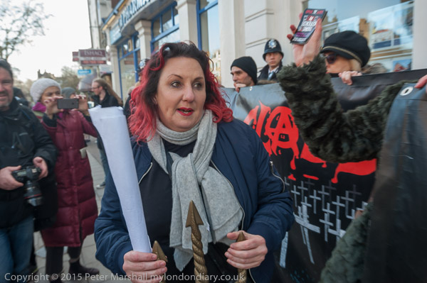 Class War leave the march to protest outside an estate agents. Lisa McKenzie with her trident