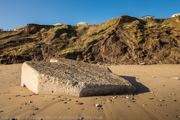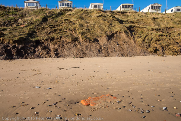 chalets on top of the mud cliffs, which are being steadily eroded