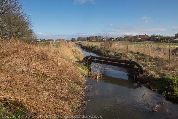 Hornsea Beck takes water from the Mere to the Sea. The picture is taken from the bridge on the trail which runs