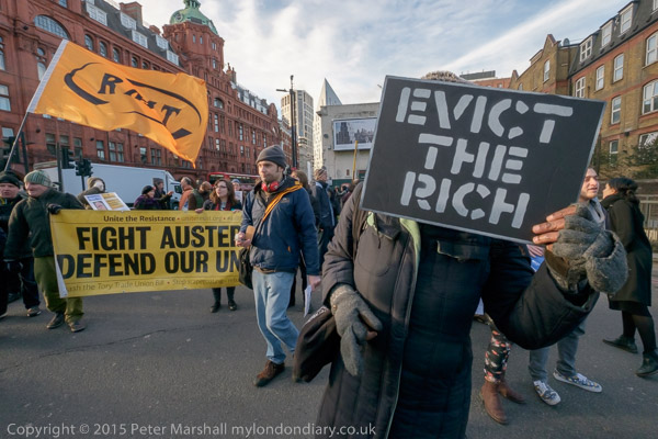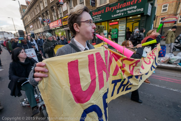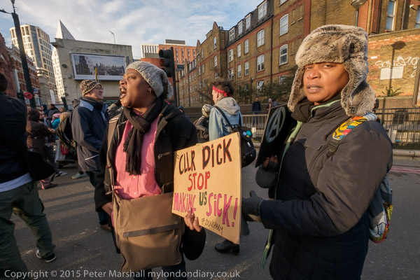 The protesters move on to the Old St roundabout, stopping the traffic on one of London's busiest roundabouts