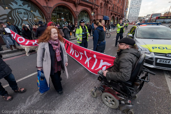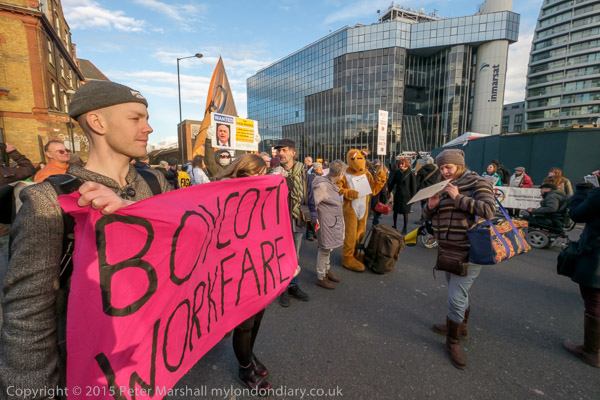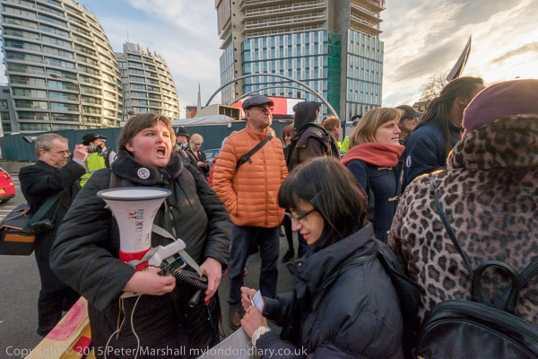 The protesters are in two groups, on the Old St roundabout and others blocking the route off the roundabout up City rd