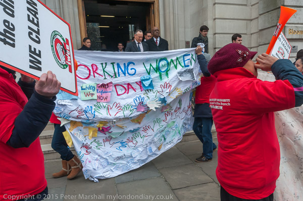 Beatriz brings solidarity form the nearby offices where she is the shop steward