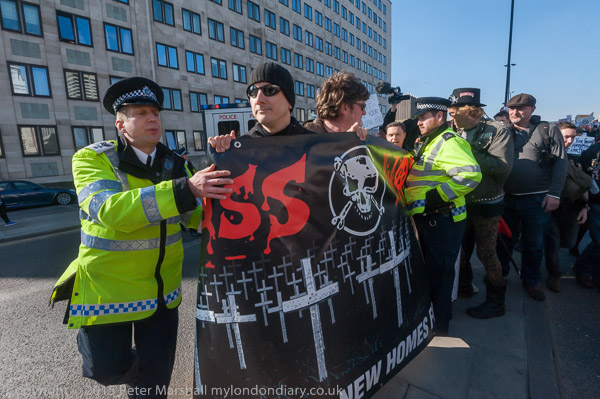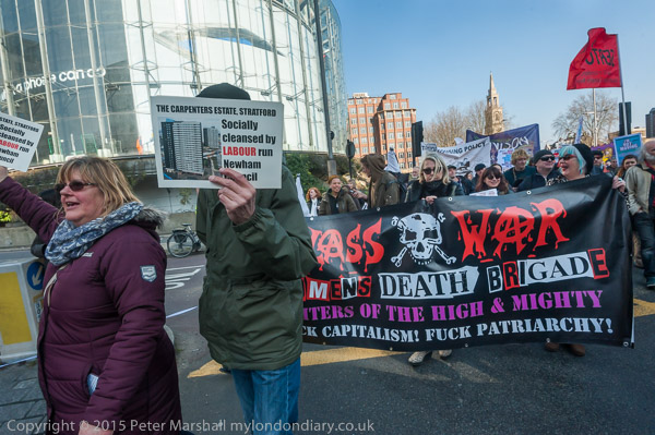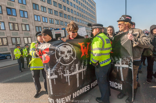Class War let any marchers with Labour banners know what they think of how Labour boroughs such as Lambeth,