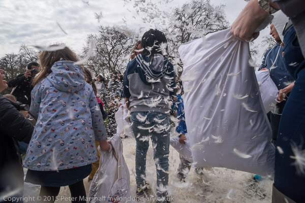 But there was one area where some women and children were playing where the feathers were getting really thick