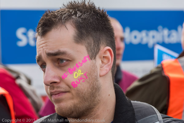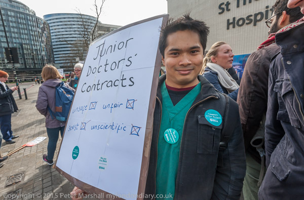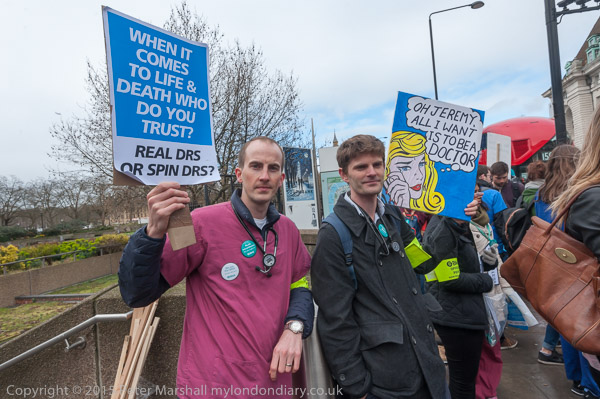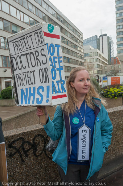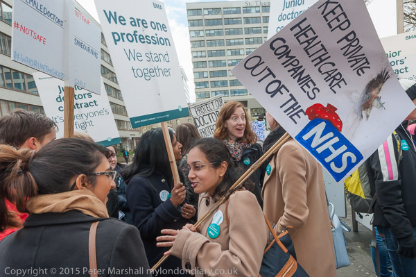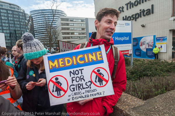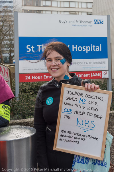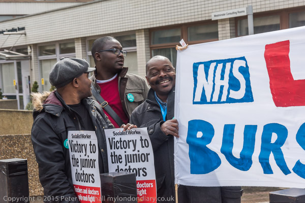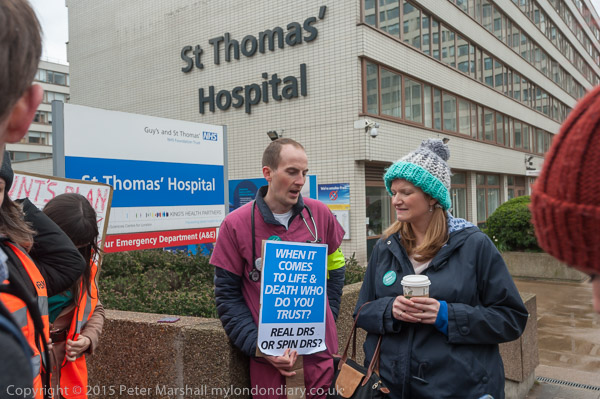 The BMA picket at the entrance to St Thomas' Hospital at the south end of Westmiinster Bridge