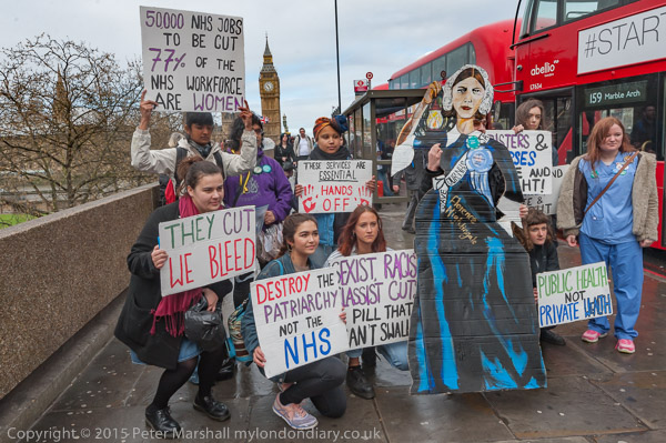 Another photographer posed a picture of some of the Sisters Uncut with 'Florence Nightingale' and Danielle Tiplady of Bursary or Bust
