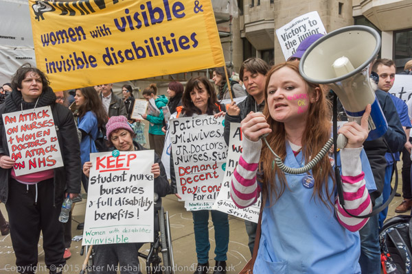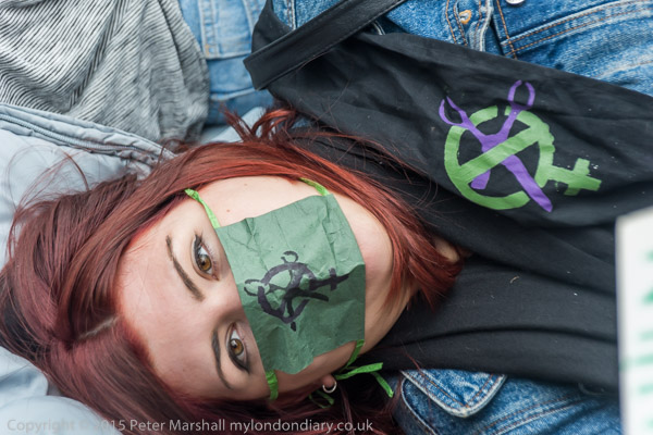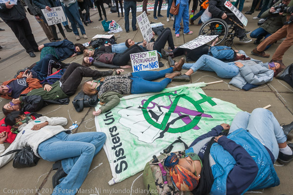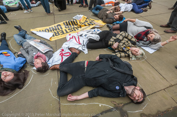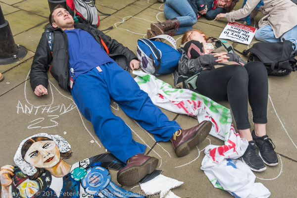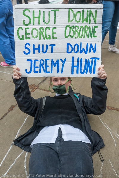 Florence Nightingale and Anthony of Bursary or Bust at die-in. Shut down Geaorge Osborne Shut Down Jeremy Hunt