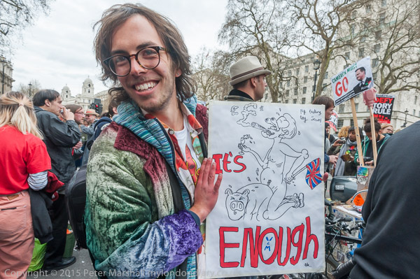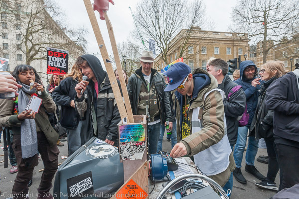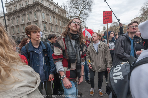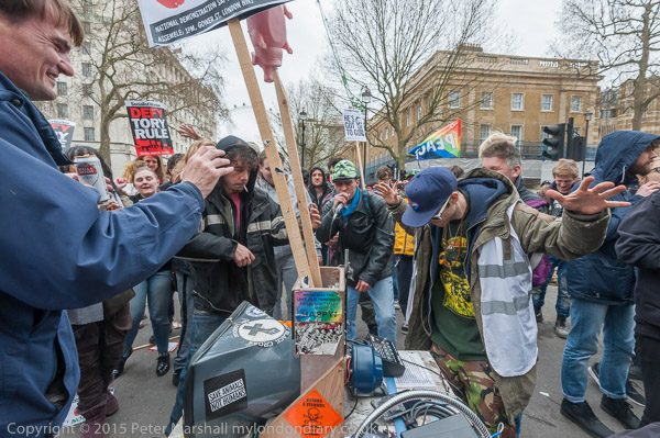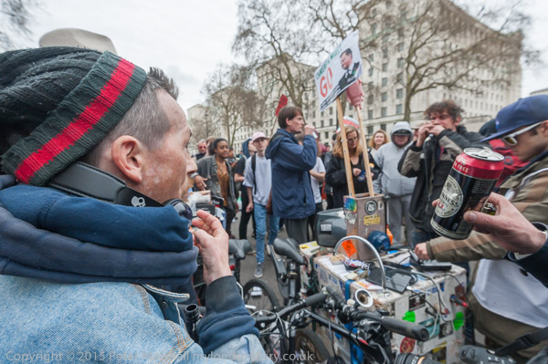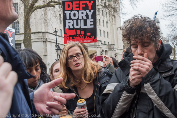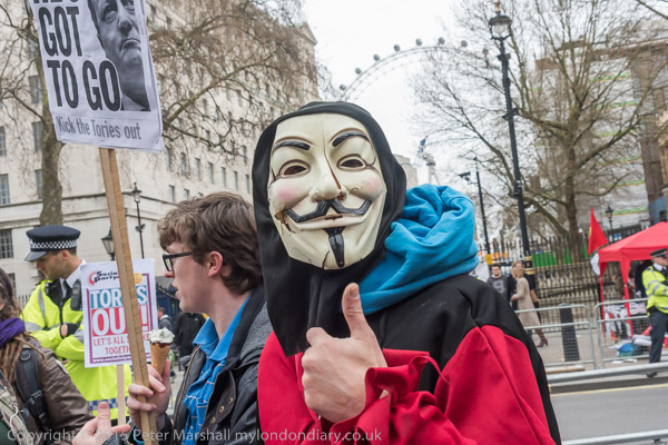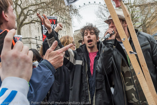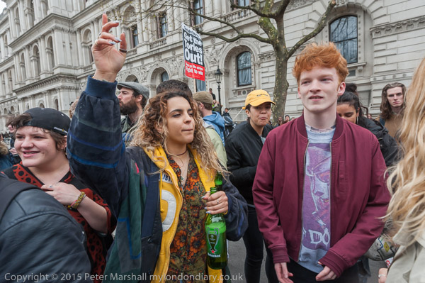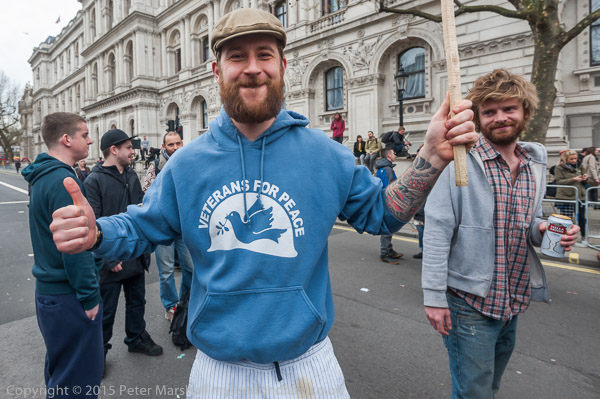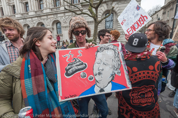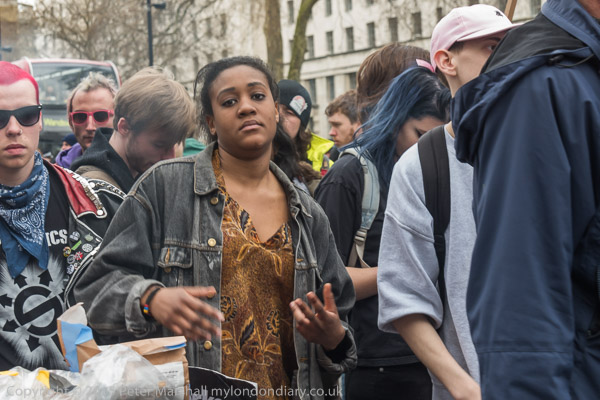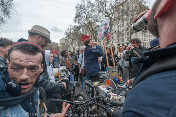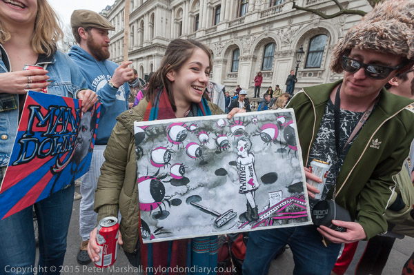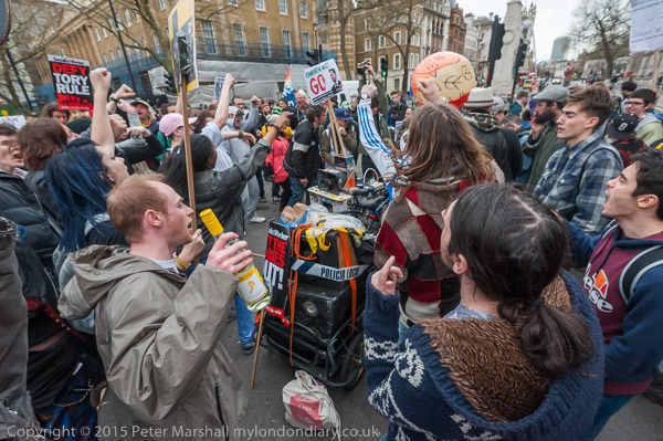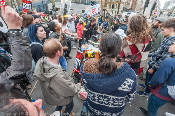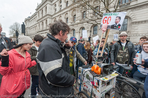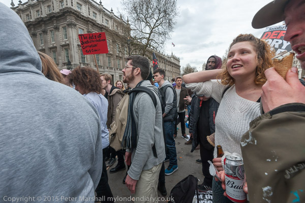 Most of the protesters had left Downing St by the time I called back around 4pm, but some were still blocking Whitehall in one direction and partying