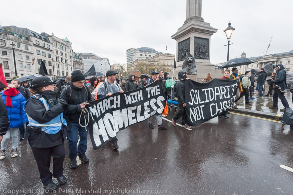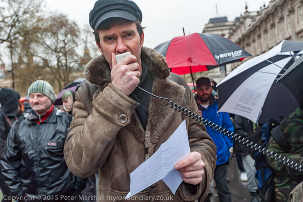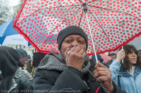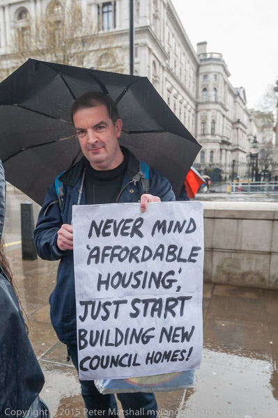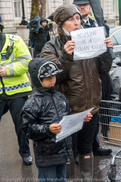 The rain was falling staedliy as several people took to the microphone to speak about the housing crisis in London