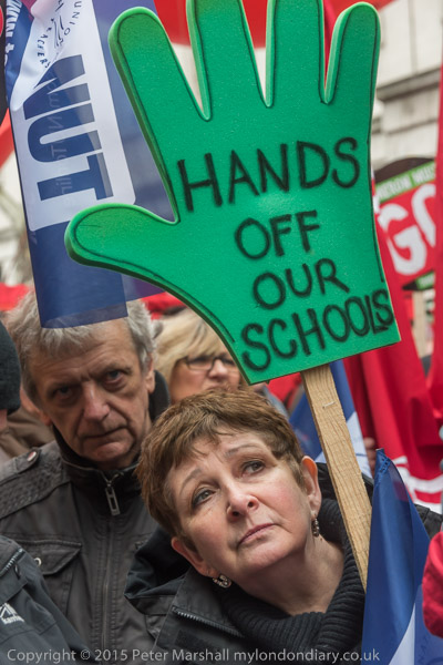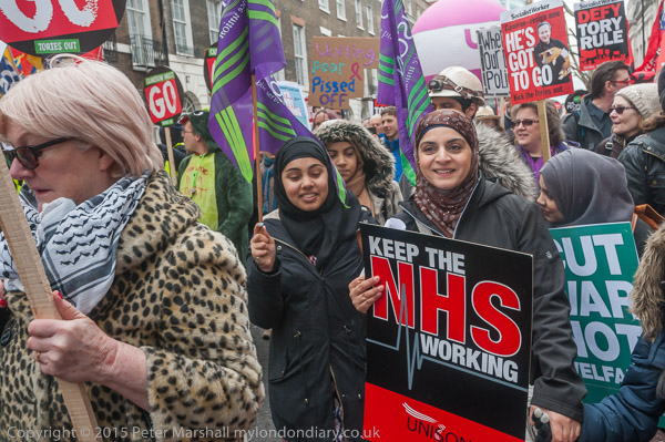 Protesters filled Gower St for the start of the march, with many from trade unions including Unison