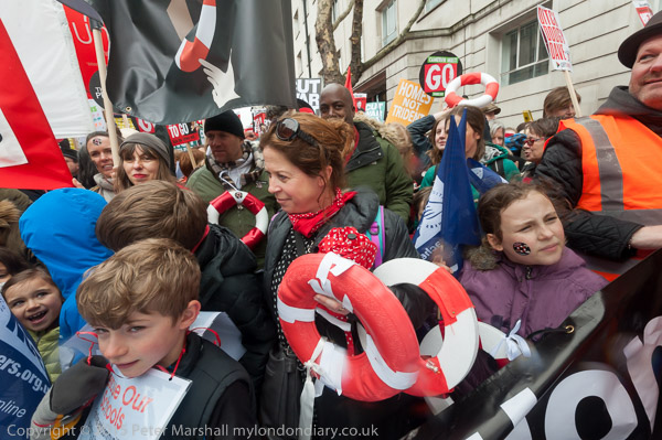 Parents and children from the 'Save Our Schools' campaign came with lifebelts