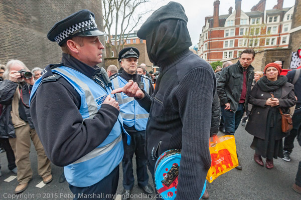 Police officer contronts a man who has been shouting offensive remarks about the Queen