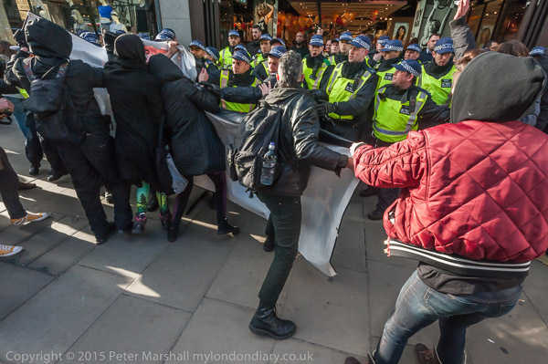 The protesters decide to move, and stand briefly in the middle of Oxford Circus