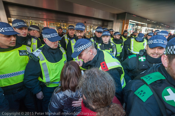 Police move away after the protesters who are going back to Topshop. But It's time for me to go home.