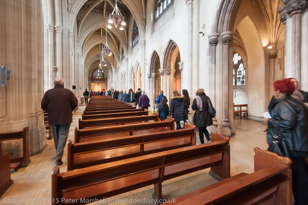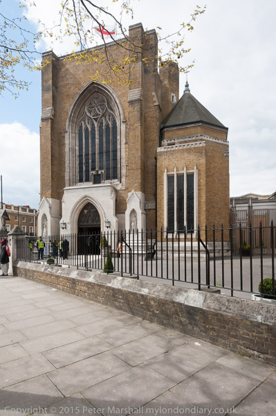 In front of the Martyr's chapel, the only part of the building to survive the Blitz