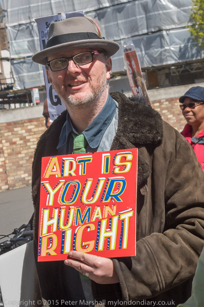Bob & Roberta Smith (Patrick Brill' Art is Your Human Right and a woman with a rosette