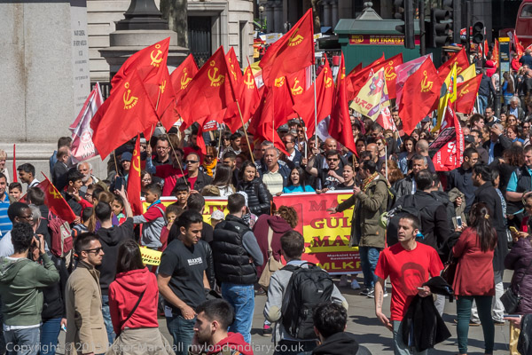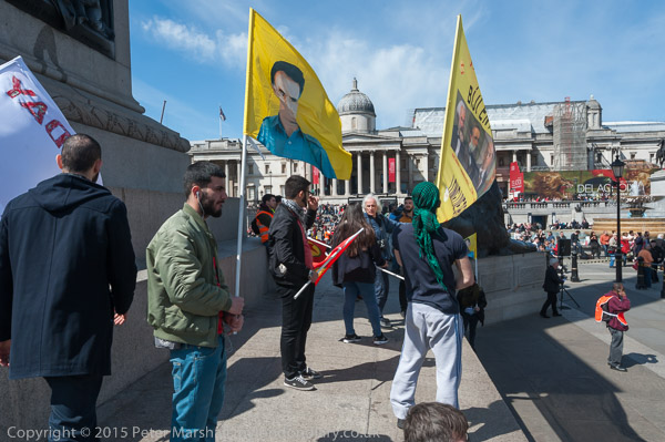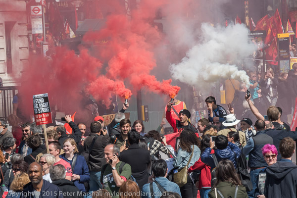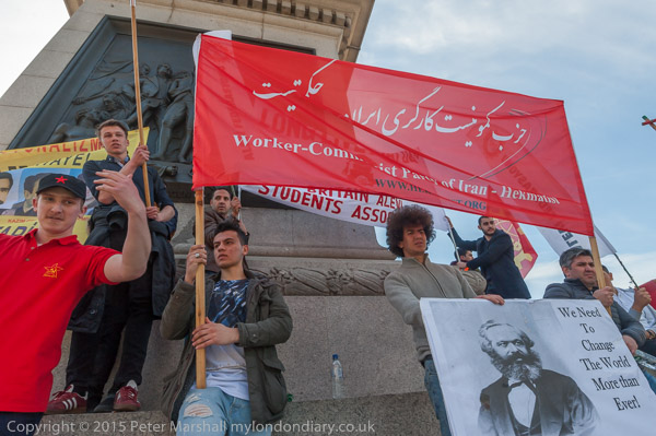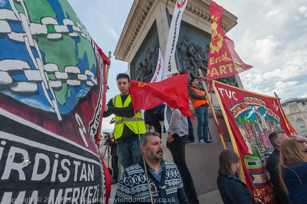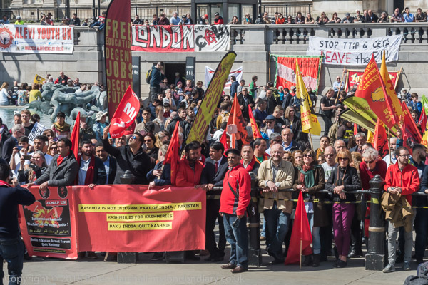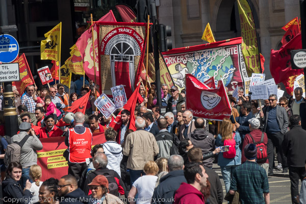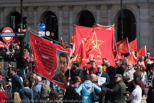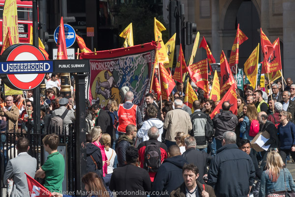 The plinth gives a clear view of the marchers entering the square with banners and flags