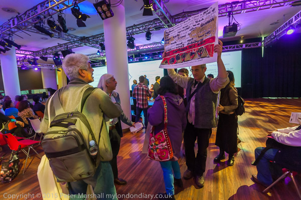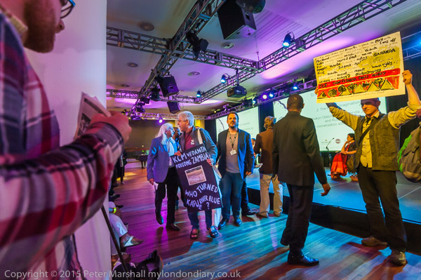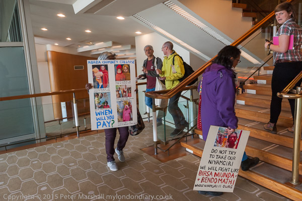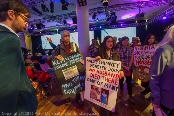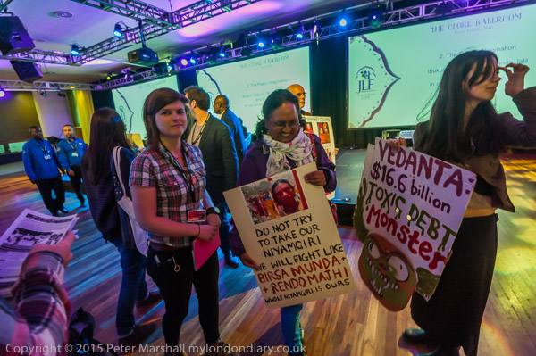 Foil Vedanta protesters were at the front of the presentation in the Clore Ballroom when I arrived