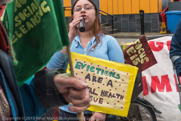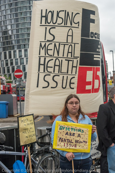 A new banner 'Housing is a Mental Health Issue - Focus E15'