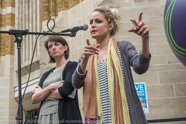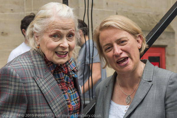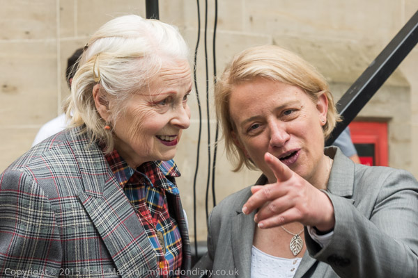 Dame Vivienne Westwood and Green Party leader Natalie Bennett were surrounded by a crowd of photographers