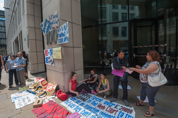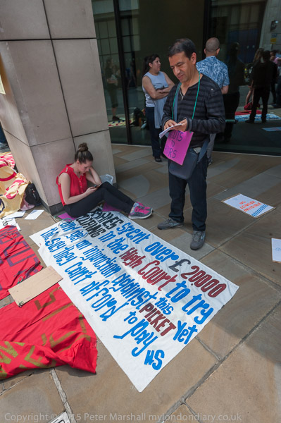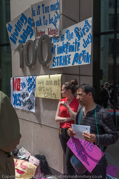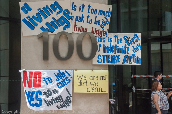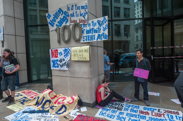 but the picket and protest were peaceful and lawful, making the case for the cleaners. A banner on the pavement