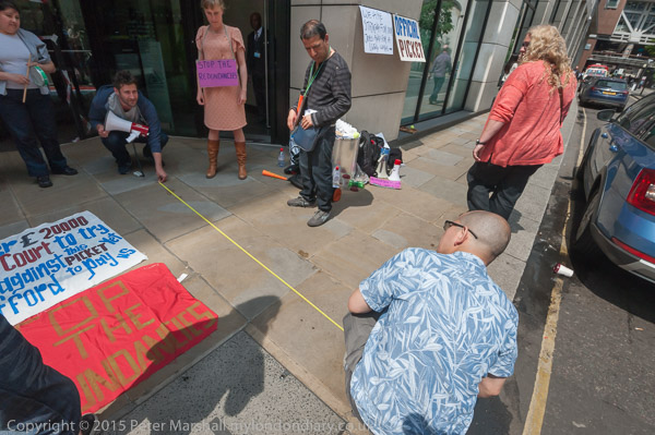 Ian Bone of Class War arrives at the picket at 100 Wood St