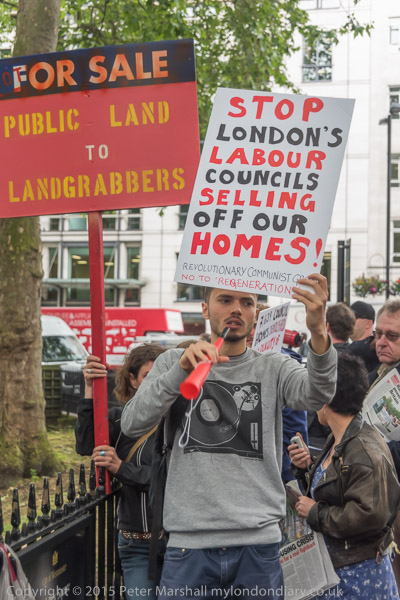 Sid Skill points out someone from Southwark Council leaving the event - Southwark have demolished 7,639 council homes