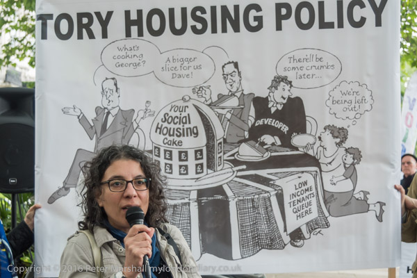 Tanya Murat of Southwark Defend Council Housing introduces the speakers before the march