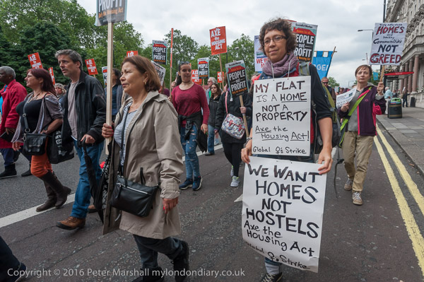 'My flat is a home not a property' ' We want homes not hostels - Axe the Housing Act' Global Women's Strike