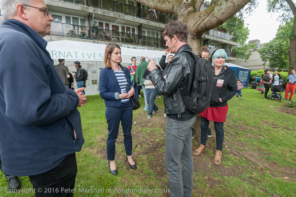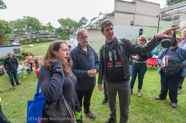 Simon Elmer of Architects for Social Housing asks Helen Hayes MP why she is at the Open Estates event