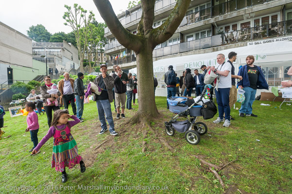 A film is shown about how Southwark, a neighbouring Labour council mistreated residents in the redevelopment of Myatt Fields