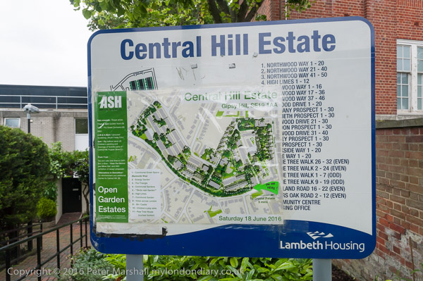 ASH poster for the event at the main entrance to the estate from Central Hill