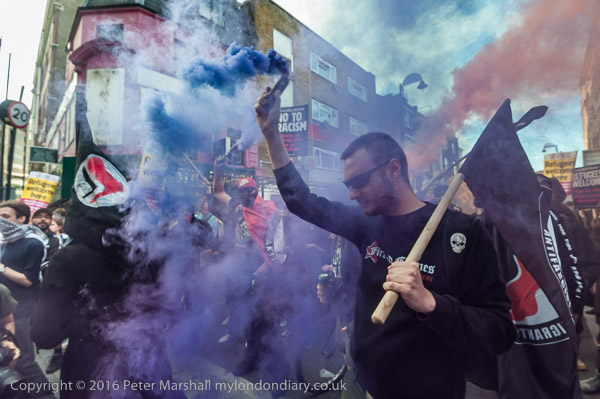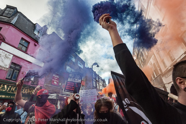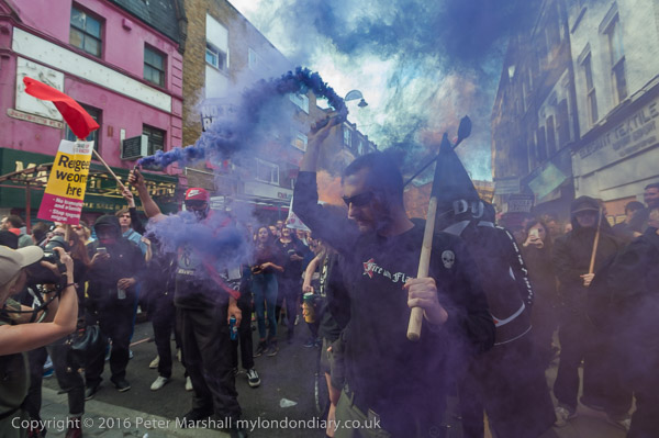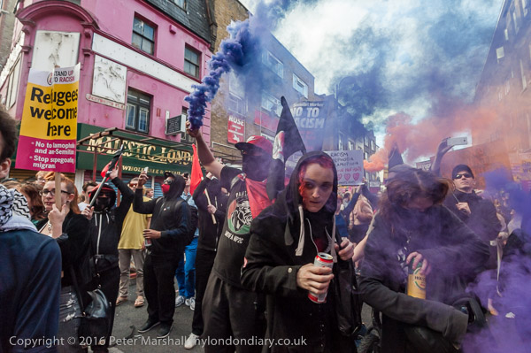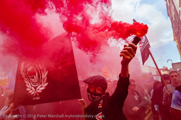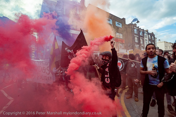 The march stopped for everyone to catch up on Middlesex St - and to set off more flares