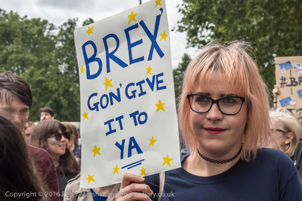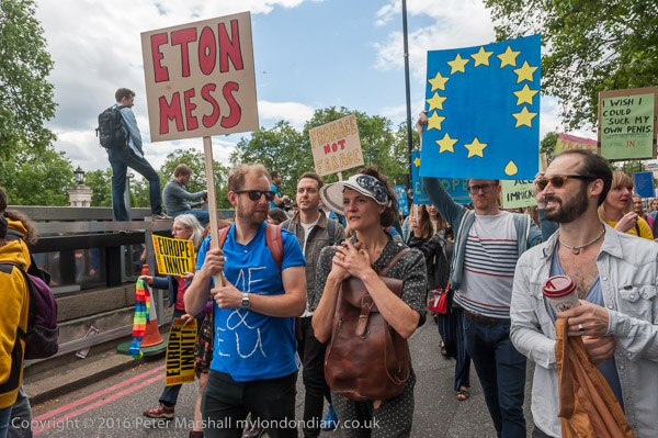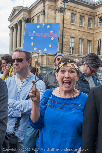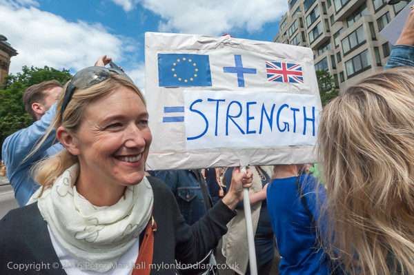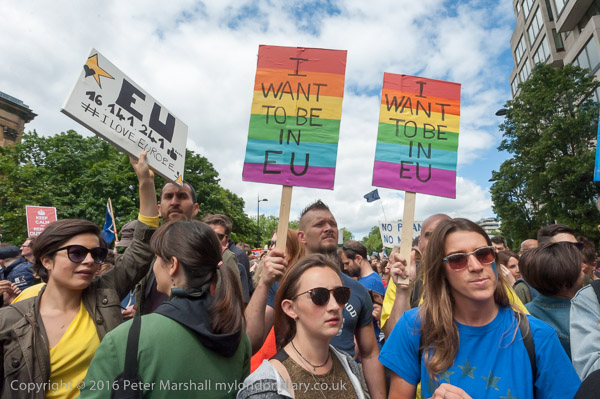 Many had placards or clothing reflecting the European flag