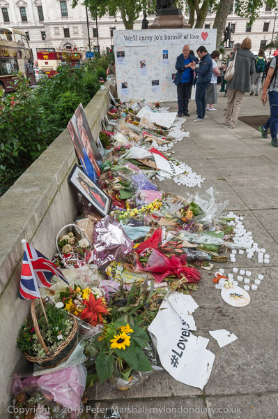 The tribute to murdered Labour MP Jo Cox was still attracting attention in Parliament Square