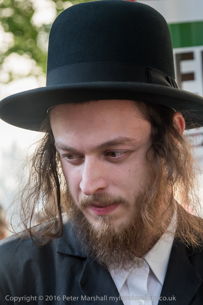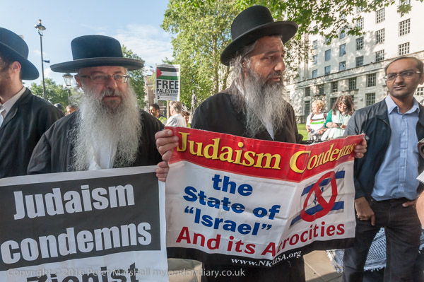 Neturei Karta Jews arrive to support the protest. The say 'Jews true to their fiath WIll Never Recognise Zionist