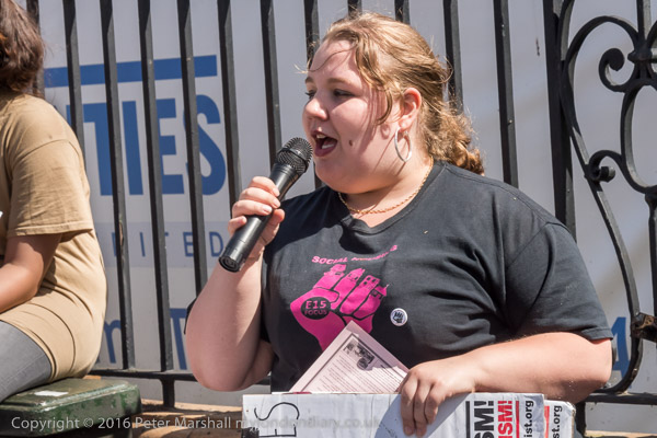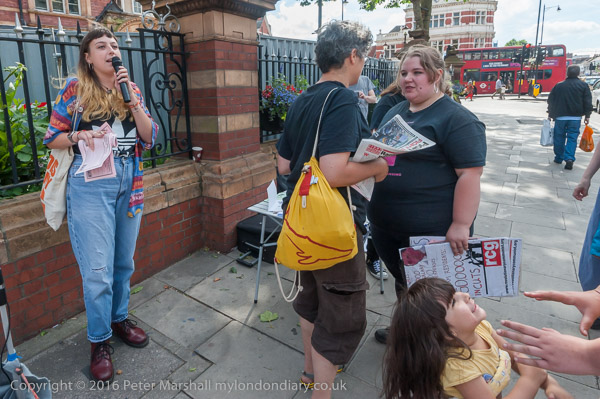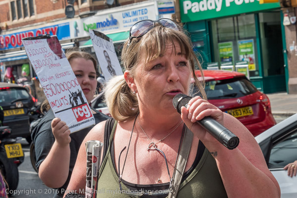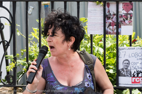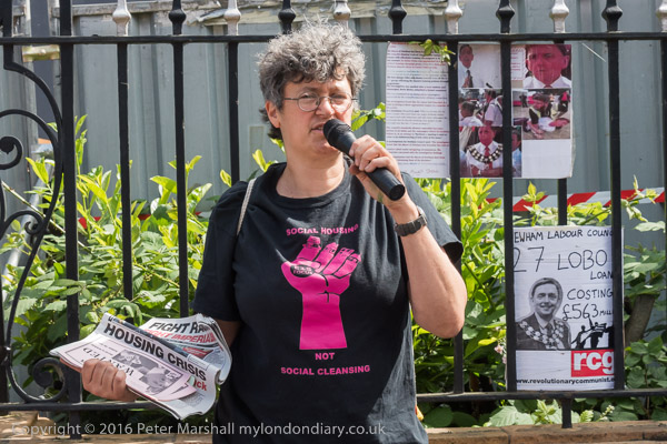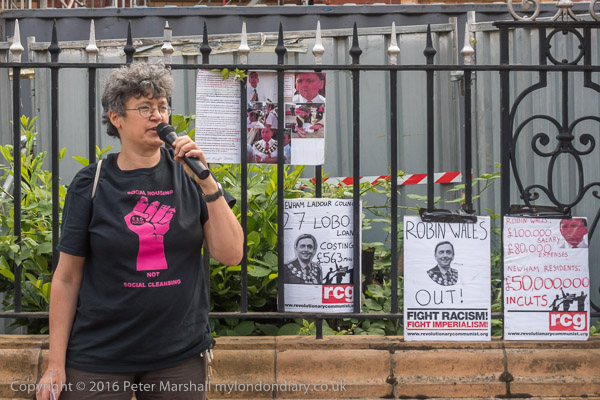 A woman who organises to help the street homeless in Newham speaks at the rally