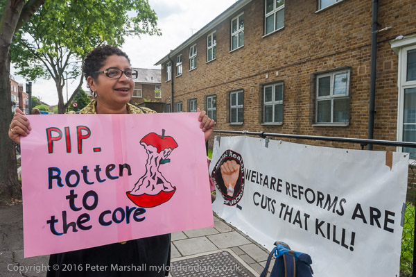 Didi Rossi speaks outside the Vauxhall PIP consultation Centre