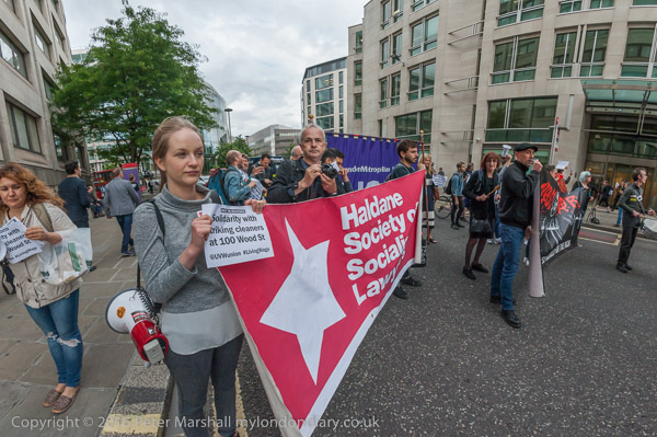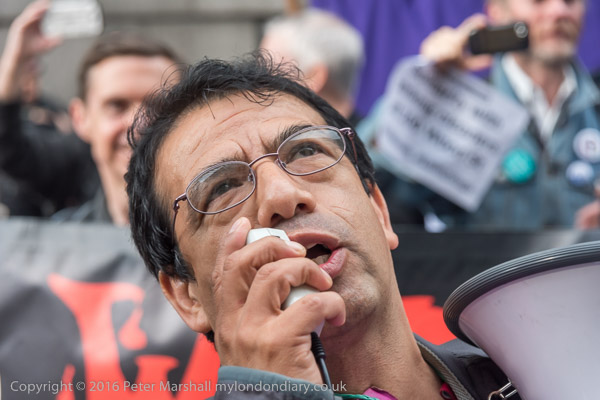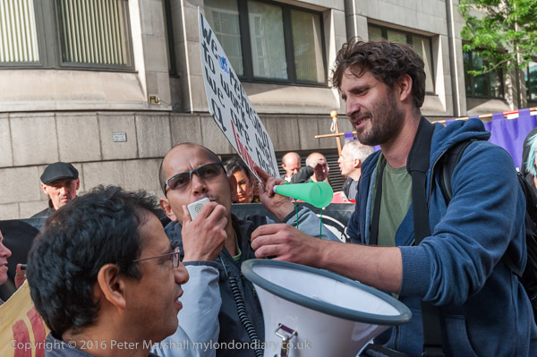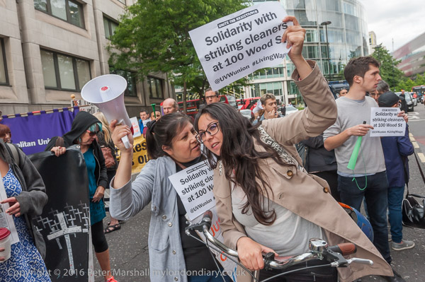 Another cleaner, Juan Carlos speaks at the end of the protest. The strike continues with a daily picket