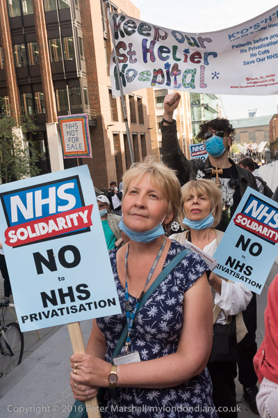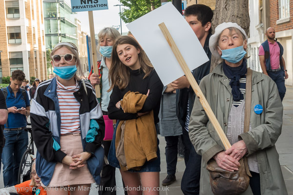 Junior doctor Aislinn Macklin-Doherty hands out posters reading 'NHS for Sale'