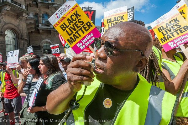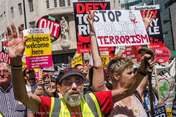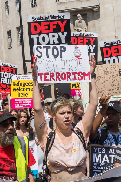 The 'Black Lives Matter - No Justice, No Peace' in front of BBC Broadcasting House