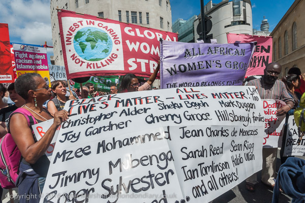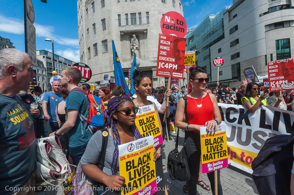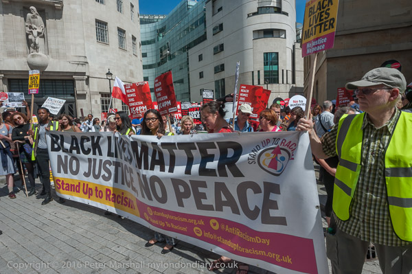 Black Lives Matter protesters in front of Broadcasting House. The BBC hardly noticed the large march
