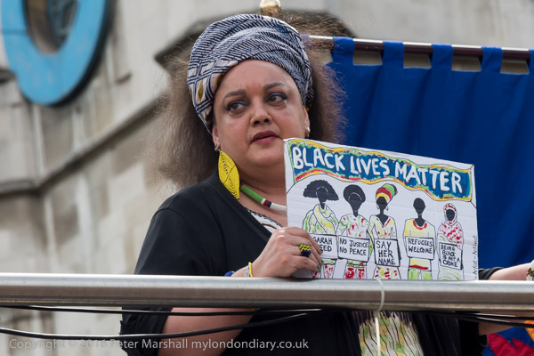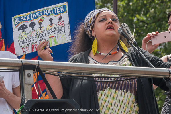 Zita Holbourne of BARAC and PCS holds up her 'Black Lives Matter' poster as she speaks