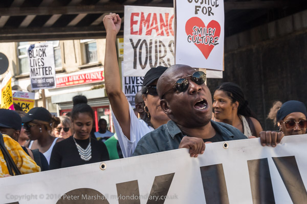 It marked the 5th anniversary of the police response which sparked the 2011 Tottenham riots and the anger of the community at the many deaths at the hands of the police was palpable. Although most of those who have died in Tottenham were black, police have also killed white people, and the police and authorities generally collude in the covering up of deaths. The initial police reaction seems often to be to lie to protect colleagues, issuing blatant lies to the press intended to tarnish the character of the victims. Evidence is seldom collected properly, officers are not questioned, CCTV cameras are found not to have been working, officers are allowed to resign rather than face disciplinary procedures, inquests are delayed...