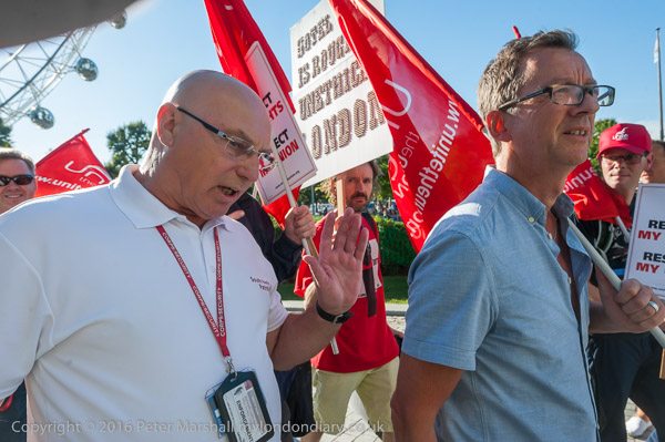 Security staff would not allow the protesters to go into the offices, but eventually agreed that a small deputation could go inside. Six were chosen and allowed in but came out almost immediately to tell the protest that the managers had refused to talk with them as a group and had attempted to separate the to deal with them as individuals. They refused as this would allow managers to intimidate the drivers and discriminate against them.