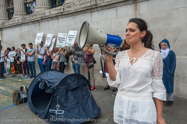 A Demonstration called by Help4Refugee Children, Syria Solidarity Campaign, Calais Action & RS21 in Trafalgar Square called for refugees to be treated as human beings and be given the rights defined by the Refugee Convention and later agreements.