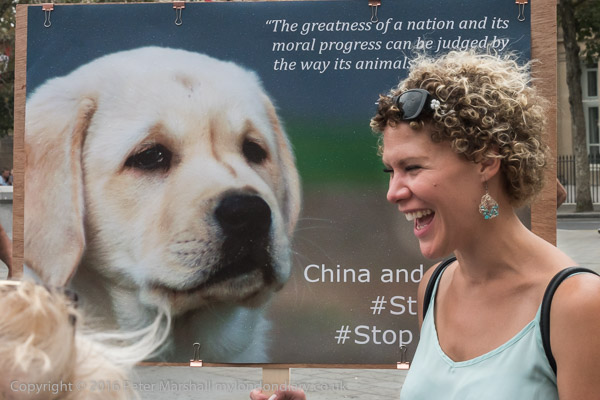 A small group of protesters marched around London, ending at Trafalgar Square in protest against the trade in cat and dog meat for human consumption.