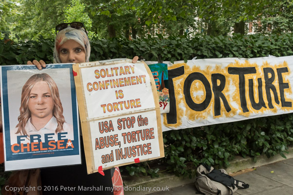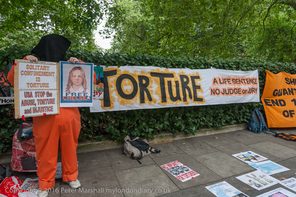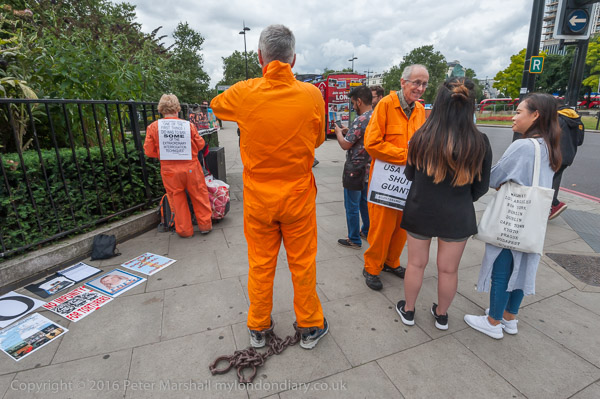 After an hour outside the US Embassy the protst moved to Marble Arch