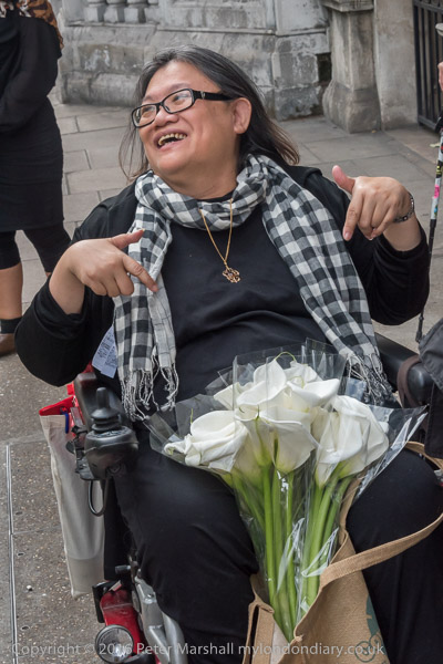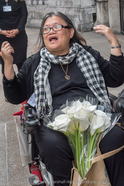 A Japanese man from the embassy comes to talk and take the flowers