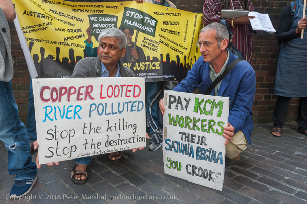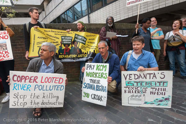 The protesters set up in the yard leading to the Ironmonger's Hall with posters about Vedanta's crimes around